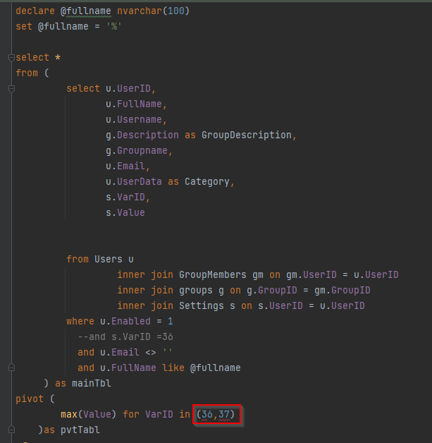 I have a situation where I need to pivot PDM’s Settings database table. I know how to do this with the variableName and variablevalue, but have never tried it with the Settings table. I know the example below is incorrect. What is the right way to do it?